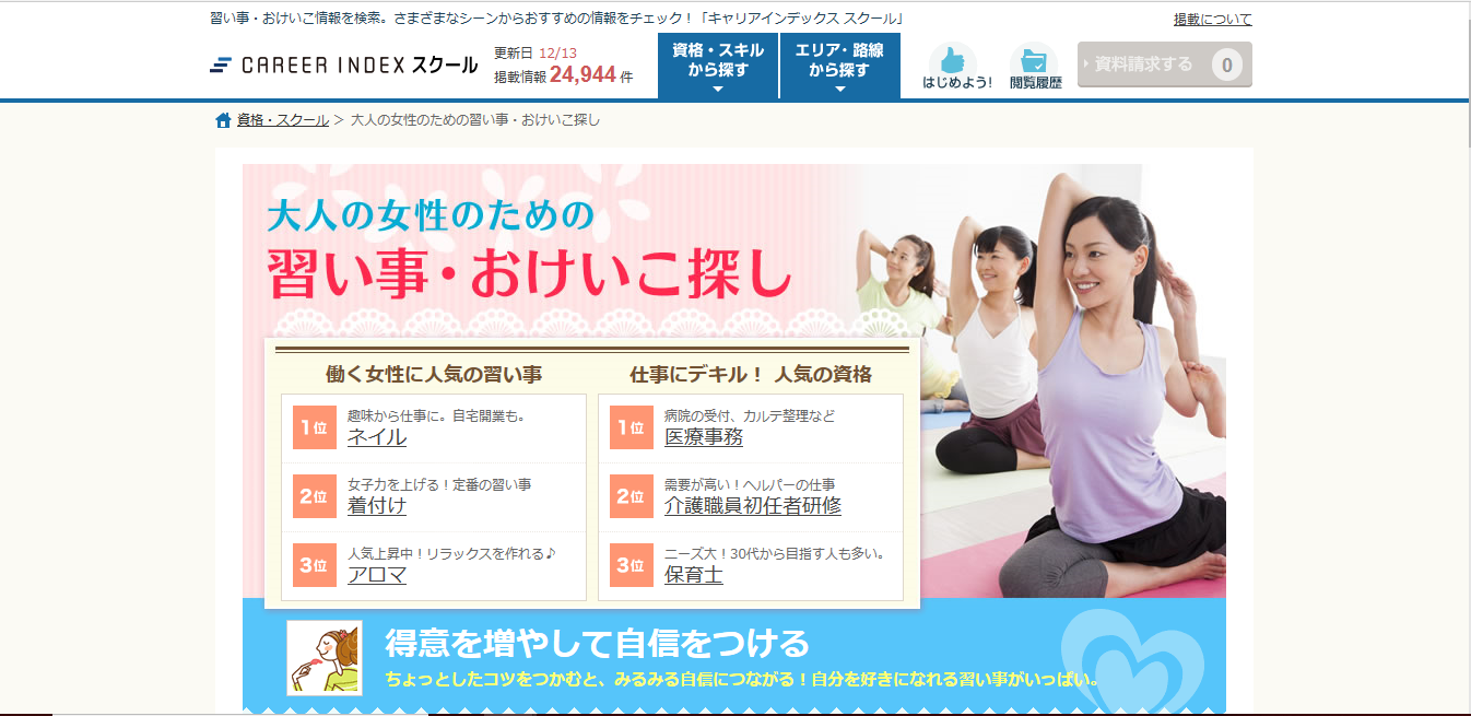 ・大人の女性に人気の習い事をメインにしたサイト