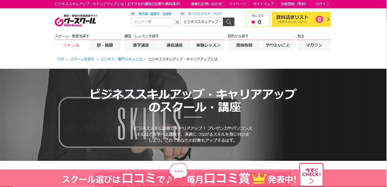 ・自宅や職場から通えるスクールが検索可