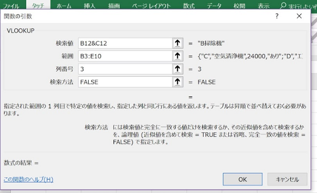 最後にOKをクリックすると、Bの掃除機の値段が表示されます。