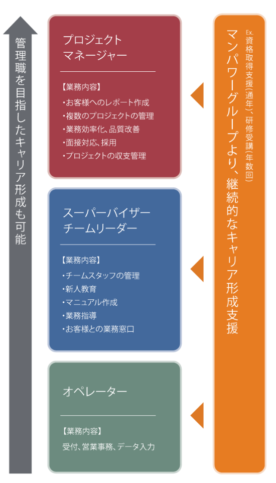 それぞれのポジションで必要とされるスキルを身につけていくために、マンパワーグループがサポートを致します。